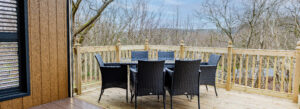 Upgrade your holiday experience with a Deluxe Den – the next step up in modern, spacious glamping. Designed more like a small, contemporary lodge, these dens are significantly bigger than our luxury glamping pods and are perfectly positioned in a private setting at our flagship Silverdale park. With sleeping space for up to six people, a large corner sofa, a bigger bathroom, and a well-equipped kitchenette, you’ll have all the space you need to relax and unwind. The unique mezzanine level also offers a special hideaway that kids will love, making these dens the ultimate secluded family break.