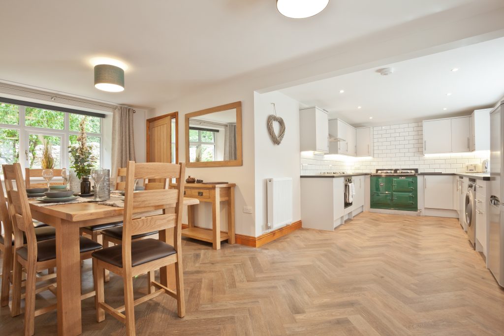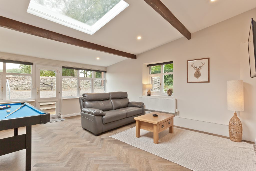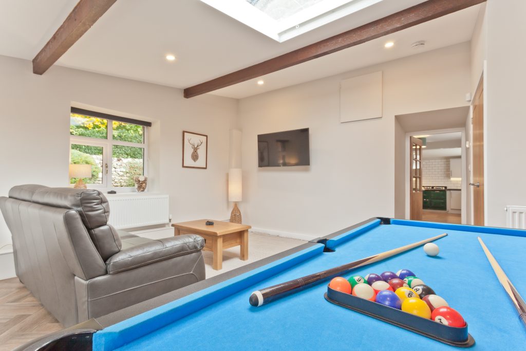 The Barn Cottage offers a truly luxurious and spacious retreat in Silverdale, designed for families seeking both relaxation and fun. Situated just a short walk from the scenic Silverdale Cove beach and the village, its position is perfect for enjoying coastal and countryside adventures. Inside, you’ll find a stylish and spacious open-plan kitchen/diner, anchored by the beautiful Aga range cooker. The cottage also features a large living room with a cosy log burner and a dedicated games room with a pool table, ensuring entertainment for all ages.